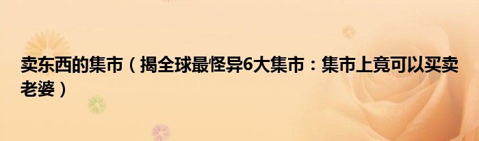 大家好,綜合小編來為大家講解下。賣東西的集市,揭全球最怪異6大集市:集市上竟可以買賣老婆很多人還不知道,現(xiàn)在讓我們一起來看看吧!