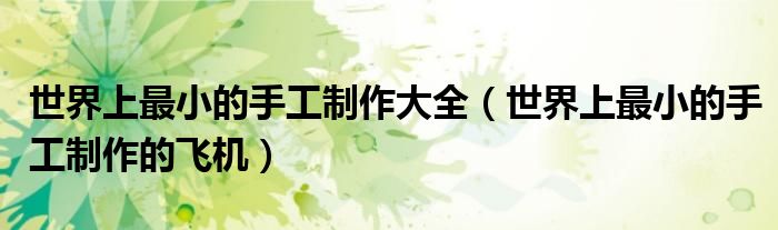 大家好,綜合小編來為大家講解下。世界上最小的手工制作大全,世界上最小的手工制作的飛機(jī)很多人還不知道,現(xiàn)在讓我們一起來看看吧!