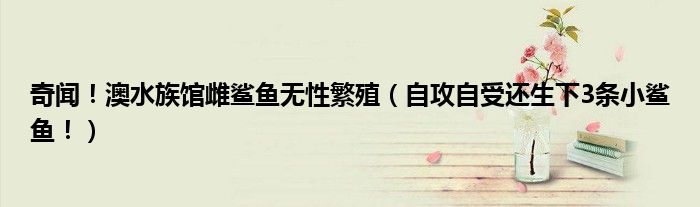 大家好,綜合小編來為大家講解下。奇聞!澳水族館雌鯊魚無性繁殖,自攻自受還生下3條小鯊魚!很多人還不知道,現在讓我們一起來看看吧!
