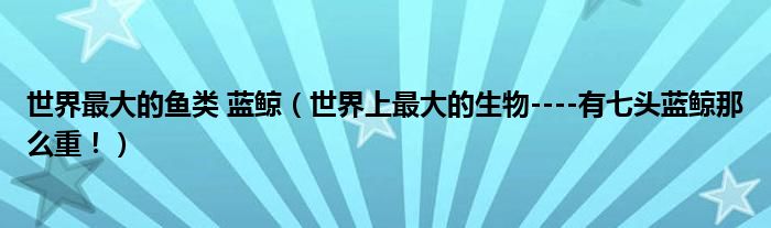 大家好,綜合小編來為大家講解下。世界最大的魚類 藍鯨,世界上最大的生物----有七頭藍鯨那么重!很多人還不知道,現在讓我們一起來看看吧!