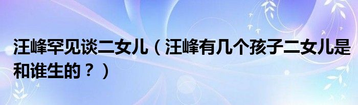 大家好,小安來為大家解答以上的問題汪峰罕見談二女兒,汪峰有幾個孩子二女兒是和誰生的?這個很多人還不知道,現在讓我們一起來看看吧!
