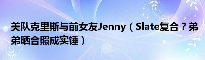 大家好,小安來為大家解答以上的問題美隊克里斯與前女友Jenny,Slate復合?弟弟曬合照成實錘這個很多人還不知道,現在讓我們一起來看看吧!