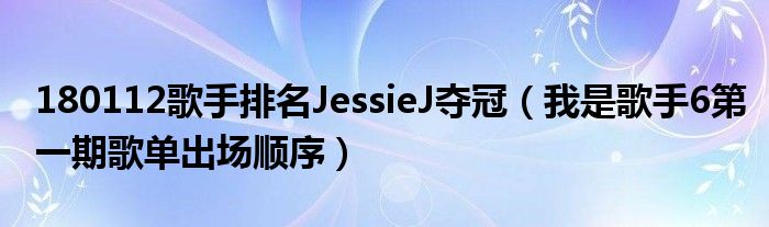 大家好,小安來為大家解答以上的問題180112歌手排名JessieJ奪冠,我是歌手6第一期歌單出場順序這個很多人還不知道,現在讓我們一起來看看吧!