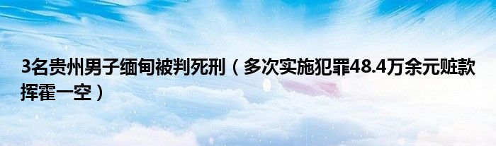 大家好,綜合小編來為大家講解下。3名貴州男子緬甸被判死刑,多次實施犯罪48.4萬余元贓款揮霍一空很多人還不知道,現在讓我們一起來看看吧!