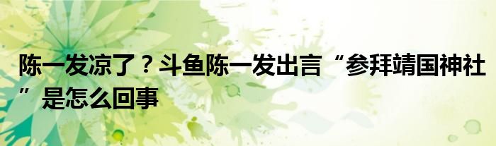 大家好,小安來為大家解答以上的問題陳一發涼了?斗魚陳一發出言“參拜靖國神社”是怎么回事這個很多人還不知道,現在讓我們一起來看看吧!