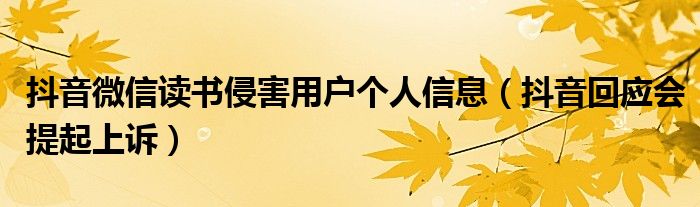 大家好,綜合小編來為大家講解下。抖音微信讀書侵害用戶個(gè)人信息,抖音回應(yīng)會提起上訴很多人還不知道,現(xiàn)在讓我們一起來看看吧!