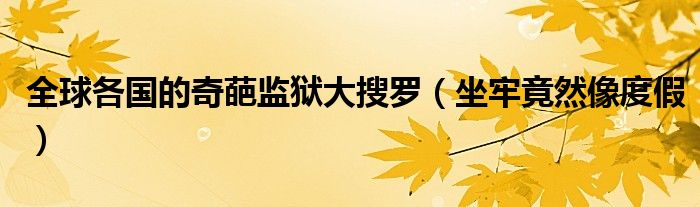 大家好,綜合小編來為大家講解下。全球各國的奇葩監獄大搜羅,坐牢竟然像度假很多人還不知道,現在讓我們一起來看看吧!