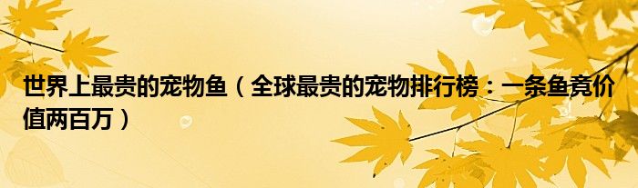 大家好,綜合小編來為大家講解下。世界上最貴的寵物魚,全球最貴的寵物排行榜:一條魚竟價值兩百萬很多人還不知道,現在讓我們一起來看看吧!