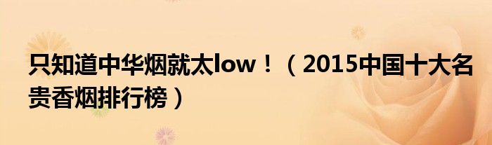 大家好,綜合小編來為大家講解下。只知道中華煙就太low!,2015中國十大名貴香煙排行榜很多人還不知道,現在讓我們一起來看看吧!