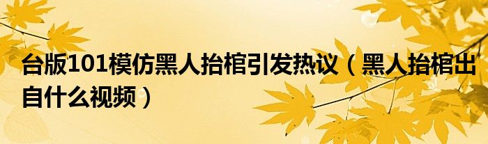 大家好,小安來為大家解答以上的問題臺版101模仿黑人抬棺引發熱議,黑人抬棺出自什么視頻這個很多人還不知道,現在讓我們一起來看看吧!