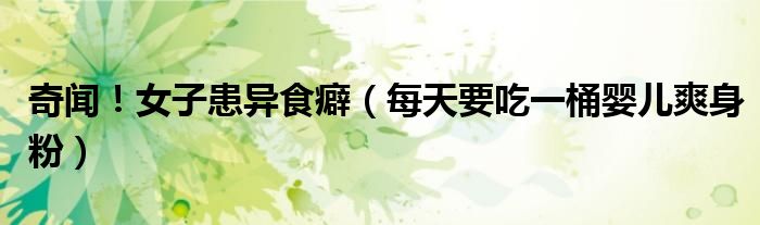大家好,綜合小編來為大家講解下。奇聞!女子患異食癖,每天要吃一桶嬰兒爽身粉很多人還不知道,現在讓我們一起來看看吧!