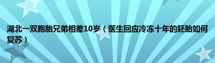 大家好,綜合小編來為大家講解下。湖北一雙胞胎兄弟相差10歲,醫生回應冷凍十年的胚胎如何復蘇很多人還不知道,現在讓我們一起來看看吧!