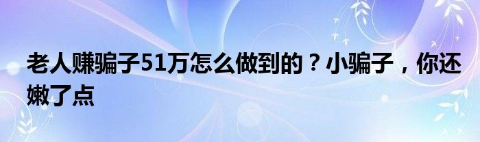 大家好,小安來為大家解答以上的問題老人賺騙子51萬怎么做到的?小騙子,你還嫩了點這個很多人還不知道,現在讓我們一起來看看吧!
