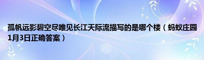 大家好,小安來為大家解答以上的問題孤帆遠影碧空盡唯見長江天際流描寫的是哪個樓,螞蟻莊園1月3日正確答案這個很多人還不知道,現在讓我們一起來看看吧!