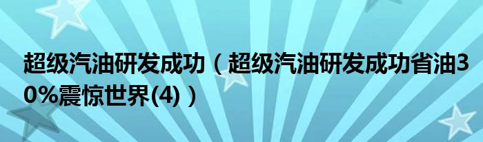 大家好,綜合小編來為大家講解下。超級汽油研發成功,超級汽油研發成功省油30%震驚世界(4)很多人還不知道,現在讓我們一起來看看吧!