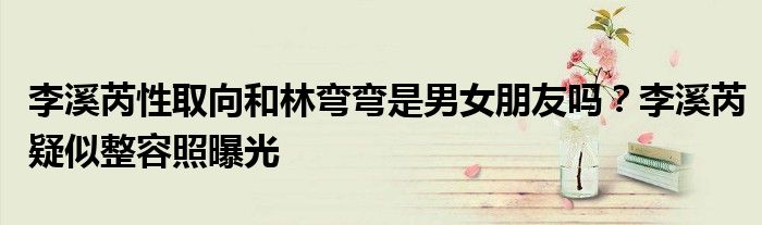 大家好,小安來為大家解答以上的問題李溪芮性取向和林彎彎是男女朋友嗎?李溪芮疑似整容照曝光這個很多人還不知道,現在讓我們一起來看看吧!