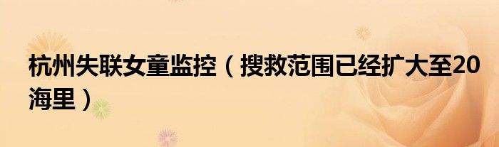 原標題:杭州失聯女童監控怎么回事 搜救范圍已經擴大至20海里