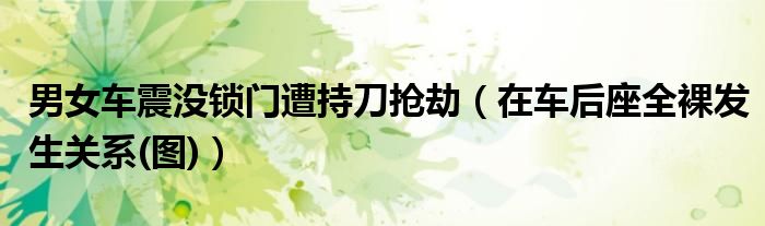 大家好,小安來為大家解答以上的問題男女車震沒鎖門遭持刀搶劫,在車后座全裸發生關系(圖)這個很多人還不知道,現在讓我們一起來看看吧!