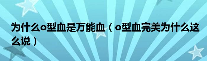 大家好,綜合小編來為大家講解下。為什么o型血是萬能血,o型血完美為什么這么說很多人還不知道,現在讓我們一起來看看吧!