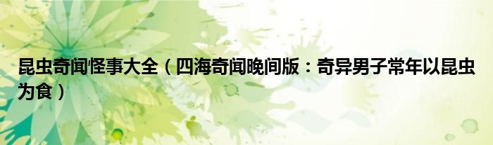大家好,綜合小編來(lái)為大家講解下。昆蟲奇聞怪事大全,四海奇聞晚間版:奇異男子常年以昆蟲為食很多人還不知道,現(xiàn)在讓我們一起來(lái)看看吧!