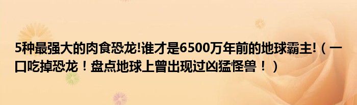 大家好,綜合小編來為大家講解下。5種最強大的肉食恐龍!誰才是6500萬年前的地球霸主!,一口吃掉恐龍!盤點地球上曾出現過兇猛怪獸!很多人還不知道,現在讓我們一起來看看吧!