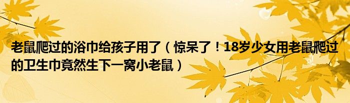 大家好,綜合小編來為大家講解下。老鼠爬過的浴巾給孩子用了,驚呆了!18歲少女用老鼠爬過的衛生巾竟然生下一窩小老鼠很多人還不知道,現在讓我們一起來看看吧!
