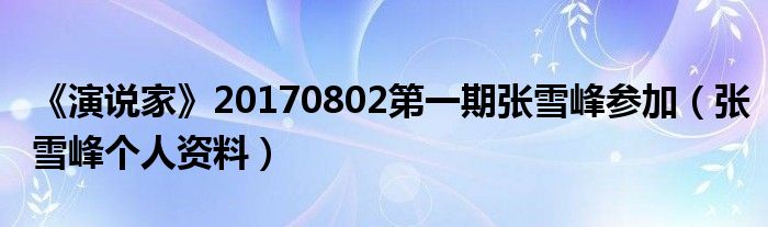 大家好,小安來為大家解答以上的問題《演說家》20170802第一期張雪峰參加,張雪峰個人資料這個很多人還不知道,現在讓我們一起來看看吧!