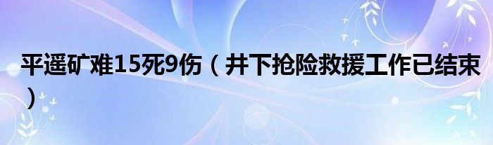 大家好,綜合小編來為大家講解下。平遙礦難15死9傷,井下搶險救援工作已結束很多人還不知道,現在讓我們一起來看看吧!