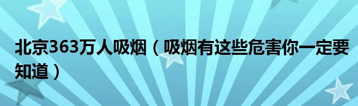 大家好,綜合小編來為大家講解下。北京363萬人吸煙,吸煙有這些危害你一定要知道很多人還不知道,現在讓我們一起來看看吧!