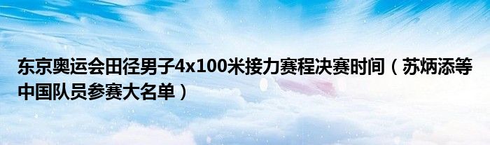 大家好,小安來為大家解答以上的問題東京奧運會田徑男子4x100米接力賽程決賽時間,蘇炳添等中國隊員參賽大名單這個很多人還不知道,現在讓我們一起來看看吧!