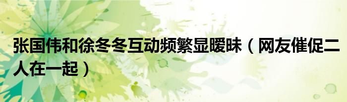 大家好,綜合小編來為大家講解下。張國偉和徐冬冬互動頻繁顯曖昧,網友催促二人在一起很多人還不知道,現在讓我們一起來看看吧!