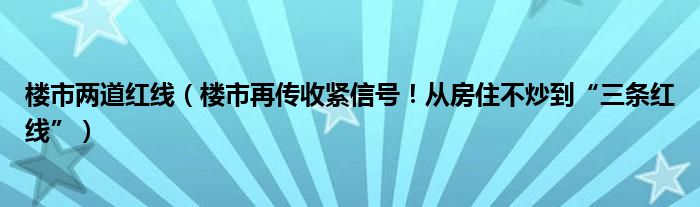 大家好,綜合小編來為大家講解下。樓市兩道紅線,樓市再傳收緊信號!從房住不炒到“三條紅線”很多人還不知道,現在讓我們一起來看看吧!
