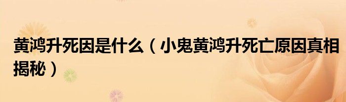 大家好,小安來(lái)為大家解答以上的問(wèn)題黃鴻升死因是什么,小鬼黃鴻升死亡原因真相揭秘這個(gè)很多人還不知道,現(xiàn)在讓我們一起來(lái)看看吧!