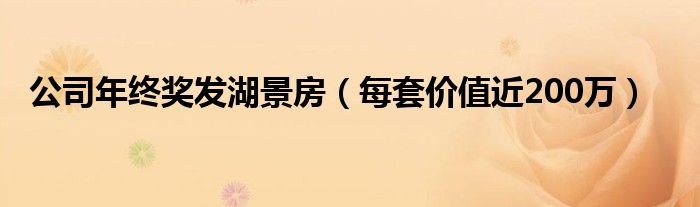 大家好,綜合小編來為大家講解下。公司年終獎發湖景房,每套價值近200萬很多人還不知道,現在讓我們一起來看看吧!
