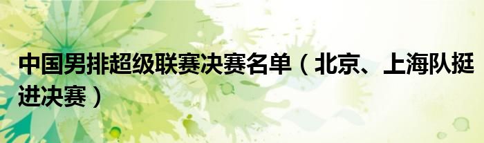 大家好,小安來為大家解答以上的問題中國男排超級聯賽決賽名單,北京、上海隊挺進決賽這個很多人還不知道,現在讓我們一起來看看吧!