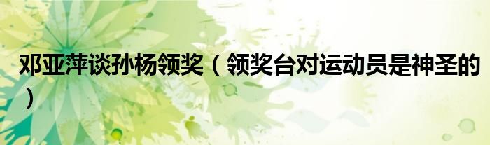 大家好,綜合小編來為大家講解下。鄧亞萍談孫楊領獎,領獎臺對運動員是神圣的很多人還不知道,現在讓我們一起來看看吧!