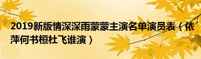 大家好,小安來(lái)為大家解答以上的問(wèn)題2019新版情深深雨蒙蒙主演名單演員表,依萍何書(shū)桓杜飛誰(shuí)演這個(gè)很多人還不知道,現(xiàn)在讓我們一起來(lái)看看吧!