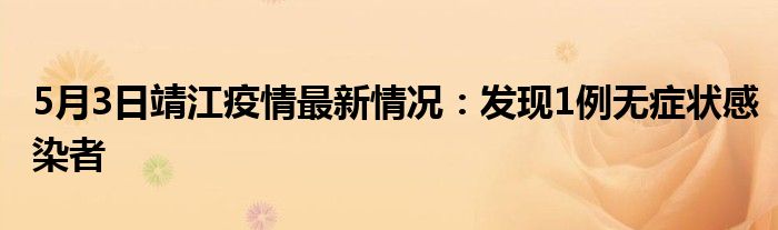 大家好,小安來為大家解答以上的問題5月3日靖江疫情最新情況:發現1例無癥狀感染者這個很多人還不知道,現在讓我們一起來看看吧!