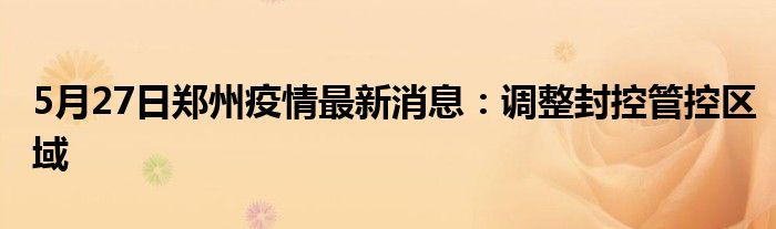 大家好,小安來(lái)為大家解答以上的問(wèn)題5月27日鄭州疫情最新消息:調(diào)整封控管控區(qū)域這個(gè)很多人還不知道,現(xiàn)在讓我們一起來(lái)看看吧!