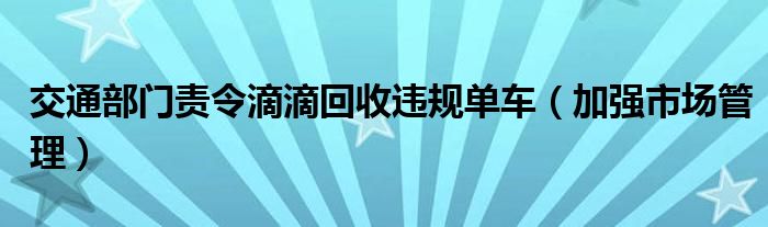 大家好,綜合小編來為大家講解下。交通部門責(zé)令滴滴回收違規(guī)單車,加強(qiáng)市場管理很多人還不知道,現(xiàn)在讓我們一起來看看吧!