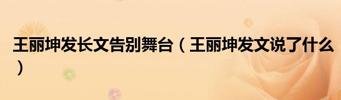 王麗坤發長文告別舞臺 王麗坤發文說了什么