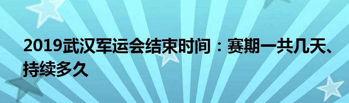 大家好,小安來為大家解答以上的問題2019武漢軍運會結束時間:賽期一共幾天、持續多久這個很多人還不知道,現在讓我們一起來看看吧!