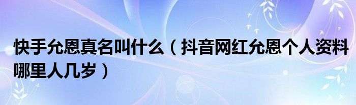 大家好,小安來(lái)為大家解答以上的問題快手允恩真名叫什么,抖音網(wǎng)紅允恩個(gè)人資料哪里人幾歲這個(gè)很多人還不知道,現(xiàn)在讓我們一起來(lái)看看吧!