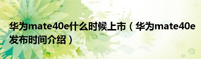 大家好,小安來為大家解答以上的問題華為mate40e什么時候上市,華為mate40e發布時間介紹這個很多人還不知道,現在讓我們一起來看看吧!