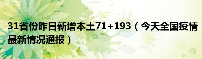 大家好,小安來(lái)為大家解答以上的問(wèn)題31省份昨日新增本土71+193,今天全國(guó)疫情最新情況通報(bào)這個(gè)很多人還不知道,現(xiàn)在讓我們一起來(lái)看看吧!