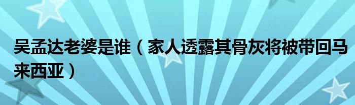 大家好,小安來為大家解答以上的問題吳孟達老婆是誰,家人透露其骨灰將被帶回馬來西亞這個很多人還不知道,現在讓我們一起來看看吧!