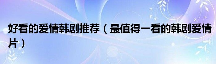 大家好,綜合小編來為大家講解下。好看的愛情韓劇推薦,最值得一看的韓劇愛情片很多人還不知道,現在讓我們一起來看看吧!