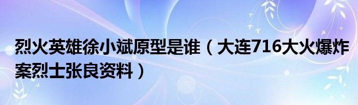 大家好,小安來為大家解答以上的問題烈火英雄徐小斌原型是誰,大連716大火爆炸案烈士張良資料這個很多人還不知道,現在讓我們一起來看看吧!