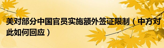 大家好,綜合小編來為大家講解下。美對部分中國官員實施額外簽證限制,中方對此如何回應(yīng)很多人還不知道,現(xiàn)在讓我們一起來看看吧!