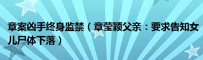 大家好,綜合小編來為大家講解下。章案兇手終身監禁,章瑩穎父親:要求告知女兒尸體下落很多人還不知道,現在讓我們一起來看看吧!